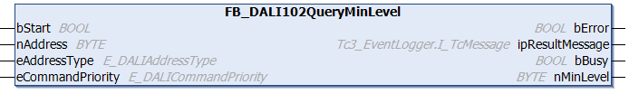 Der Baustein liest die Variable minLevel aus dem DALI-Vorschaltgerät aus.