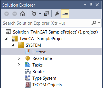 - 4. Klicken Sie im Solution Explorer im Teilbaum SYSTEM doppelt auf License.