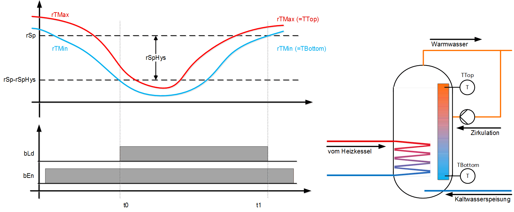 Die Ladung wird angefordert, wenn rTMin unter dem Wert von rSp-rSpHys liegt. Die Ladungsanforderung wird deaktiviert wenn rTMin wieder über dem Sollwert ist.