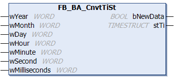 Mit dem Funktionsbaustein FB_BA_CnvtTiSt können die verschiedenen Bestandteile einer Zeitstruktur zu dieser selbst zusammen gefasst werden.