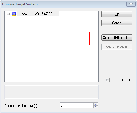 Use “Search (Ethernet)...” to enter the target system. Thus another dialog opens to either: