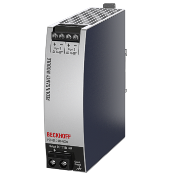 | The PS9401-2440-0000 is a redundancy module that can be used for the construction of 1+1 and N+1 redundancy systems. It has two input channels, to which power supplies with output currents of up to 20 A can be connected, and one output that can carry nominal currents of up to 40 A. The redundancy module uses MOSFET technology instead of diodes for decoupling the two input channels. This reduces the heat development and the voltage drop between input and output. Due to the low power loss, the device is very narrow and requires a width of just 36 mm on the DIN rail. Large connection terminals enable secure and fast installation. The redundancy module requires no additional auxiliary voltage. Due to the international approvals package, the device is suitable for virtually every application. Observe the connection instructions in the chapter "Parallel use for redundancy” |