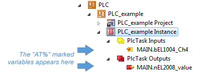 In TwinCAT, a structure can be created from the mapped process data of a terminal. An instance of this structure can then be created in the PLC, so it is possible to access the process data directly from the PLC without having to declare own variables.