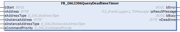 bBusy | BOOL | The output is set as soon as execution of the DALI commands has commenced. It remains active until all DALI commands have been processed. |