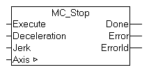 An axis is stopped with the function block MC_Stop.