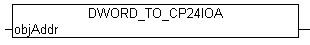 The function converts a structured TwinCAT object address into individual address parameters. See also: CP24IOA_TO_DWORD.